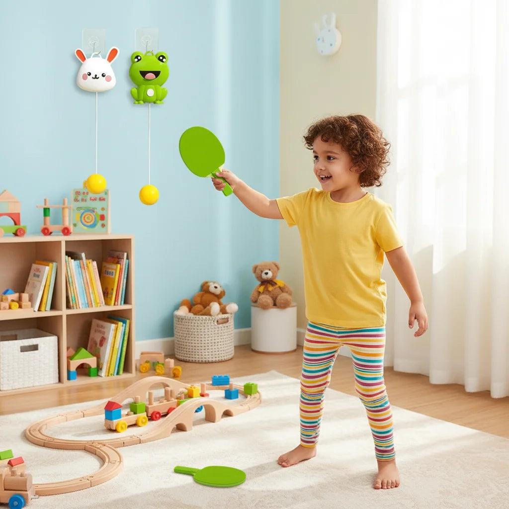 The adhesive hooks work best on smooth, clean surfaces like walls, mirrors, glass, or even smooth doors. This versatility means you can set up your BounceBuddy fun in almost any room, adapting to your family's space.